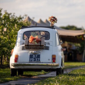 “Een week voor onze bruiloft zaten we onverwacht zonder trouwauto, maar gelukkig was daar Lotte! Wat een ontzettend vriendelijke en behulpzame vrouw – ze heeft ons echt gered. De communicatie verliep soepel en ze dacht graag met ons mee. Zo bracht ze op de ochtend van onze bruiloft zelfs persoonlijk de auto naar Tilburg. De Fiat 500 verkeerde in uitstekende staat en reed als een zonnetje. We zijn er zelfs helemaal mee naar onze feestlocatie in België gereden. Dankzij Lotte en haar prachtige Fiat 500 was onze dag compleet!”
